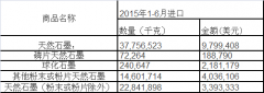 2015年1-6月我國石墨進口數量和金額情況