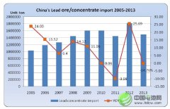 2013年中國鉛礦砂及精礦進口量同比下降17.76%