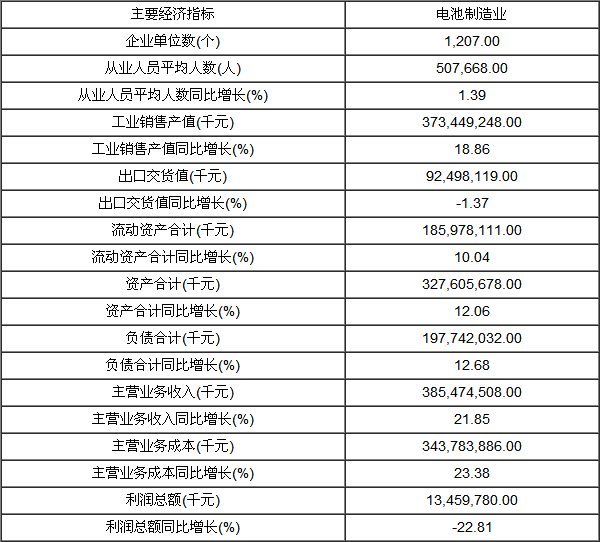 2012年中國電池制造業(yè)資產(chǎn)同比增長12.26%