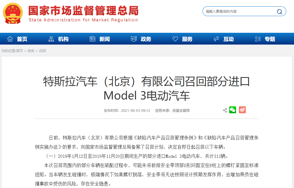 近一月特斯拉等3家車企宣布召回新能源車 涉及7524輛