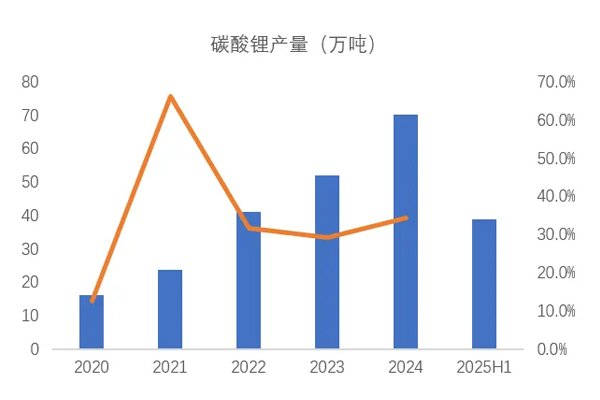 上半年我國鋰鹽產(chǎn)量合計為56.6萬噸LCE,比2024年同期增加14.5%。 ... 查閱全文