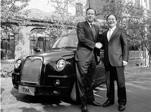 作為東道主,李書福邀請卡梅倫試乘上海出產的倫敦出租車。