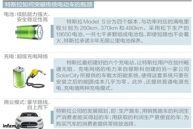 特斯拉在2013年第一季度成了世界矚目的電動車新星,使人們對一度偃旗息鼓的電動車行業(yè)重新燃起了希望。而它的成功,既來源于其在電池技術上的突破,也得益于其創(chuàng)新的造車思維——從豪華電動車入手,自上而下。