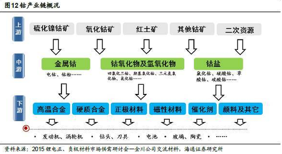 鈷是世界上最重要的戰(zhàn)略礦產(chǎn)之一,是三元電池正極材料中的關(guān)鍵元素,由于其在三元鋰離子電池和航空航天耐高溫合金的應(yīng)用,未來發(fā)展前景不可限量。受益于國(guó)內(nèi)外新能源汽車高速增長(zhǎng),未來三元?jiǎng)恿﹄姵赜免捫枨髮⒋蠓鲩L(zhǎng)。據(jù)業(yè)內(nèi)專家介紹,鈷的供需平衡將在 2016 年起開始逐漸改善出現(xiàn)小幅短缺,預(yù)計(jì)到 2017 年供需缺口擴(kuò)大到 4000 噸-5000 噸的水平,未來鈷價(jià)將逐漸企穩(wěn)回升。