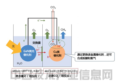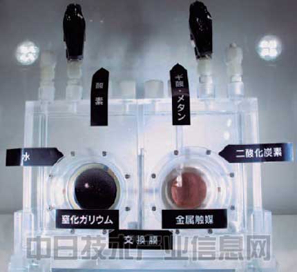 松下在開發出成功合成蟻酸的光合系統以后,開始在明反應中采用氮化鎵(GaN)類光學催化劑。據介紹,氮化鎵適合將電子的能量提高到二氧化碳的還原等級。“以前采用氧化鈦(TiO2)等,但用于還原二氧化碳還不夠有力”(松下R&D本部尖端技術研究所環保材料研究小組主管研究員四橋聰史)。
