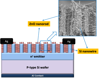 嵌入ZnO納米線的黑硅太陽能電池結構示意圖
