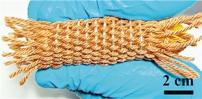 據(jù)物理學家組織網(wǎng)5月27日報道,新的研究設(shè)計和編制的碳納米管(CNT)復合紗線,可牢牢纏繞進棉纖維之中,創(chuàng)建出高性能的鋰離子電池。該纖維的直徑為1毫米左右,可以編織成柔性的織物或布料,并且與靈活的可佩戴電子設(shè)備兼容。