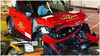 內部明顯可見的籠形鋼梁骨架 2.意大利tazzari:意大利車廠TAZZARI藉由了NICE車廠的協助,推出新款的Zero電動車。Zero的雙門都會車相當具有設計感,因為使用
