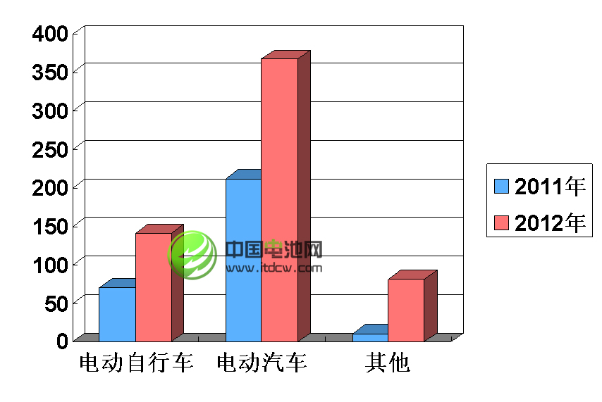 2012年全球動力鋰離子電池市場增長總量527.12萬kWh,雖然與3C小電池還有近100萬kWh的差距,但增長速度(近100%)遠(yuǎn)高于小電池(不到30%);交通工具各細(xì)分市場呈現(xiàn)全面增長態(tài)勢,工業(yè)&儲能市場目前還主要依賴電動工具,但智能電網(wǎng)儲能和移動基站電源市場增長很快。
