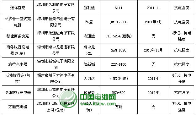 流通領域商品質量監測不合格商品公示名單(充電器)