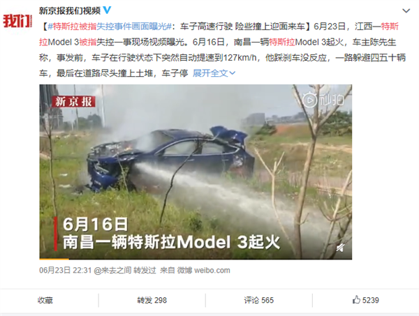 美國男子駕駛特斯拉遇車禍 一天后電池反復起火燃燒