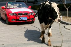 百萬寶馬修車遭掉包 車主租奶牛拉車維權(圖)
