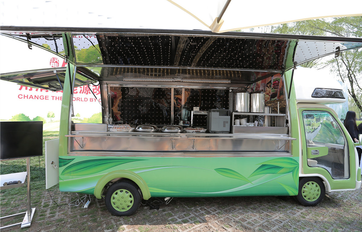 發布會上,漢能還與專業的移動廚房生產商山東泰安長安餐飲設備有限公司啟動戰略合作。憑借漢能移動能源應用技術,雙方共同打造全球首款太陽能全工作用電餐車。移動餐車上集成的薄膜發電組件,在正常光照條件下每天可發6度電,可以實現餐車照明并為冷藏柜、豆漿機、煎鍋、蒸鍋等各類餐車電器供電。太陽能發電可以滿足該移動廚房全部設備用電量,保障日常經營,并從真正意義上實現了零排放。此外,通過與太陽能組件的結合,該餐車設備大多采用直流供電方案,最大限度的降低能耗,是中國餐飲設備及車輛界的創新之作。