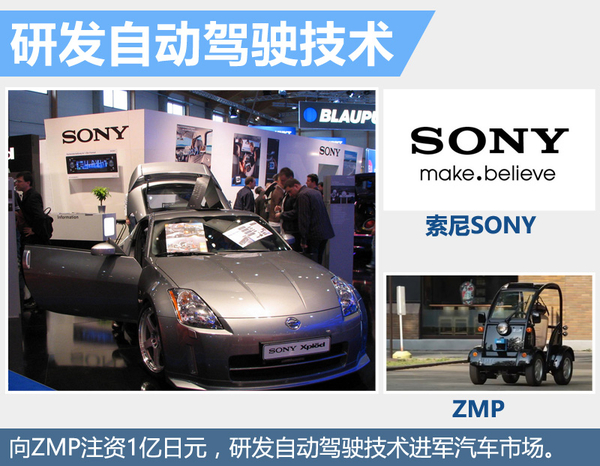 索尼此前宣布向日本一家從事汽車(chē)自動(dòng)駕駛技術(shù)開(kāi)發(fā)的日本企業(yè)ZMP注資1億日元,正式涉足自動(dòng)駕駛汽車(chē)領(lǐng)域。目前自動(dòng)駕駛汽車(chē)需要多達(dá)10個(gè)攝像頭,索尼已生產(chǎn)車(chē)載圖像傳感器,其靈敏度號(hào)稱可以十倍于現(xiàn)今普通車(chē)載傳感器,更方便在弱光環(huán)境下進(jìn)行物體拍攝。而ZMP則早已開(kāi)始銷(xiāo)售與微軟合作的RoboCar PHV自動(dòng)駕駛汽車(chē)。索尼與之合作,將能夠使自己的車(chē)載傳感器與ZMP的軟件技術(shù)相整合,從而更加深入的參與到未來(lái)智能汽車(chē)的制造。