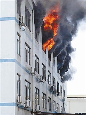 據現場一名工人介紹,昨日下午1點20分左右,他們正在宿舍午睡,一名起床上洗手間的同事突然看到,距離宿舍僅不到8米的工房4樓燃起了大火?!疤植懒?,當時火很大,我們快被嚇死了。”該工人說,黑濃煙不斷從窗戶沖向天空,形成了黑色的蘑菇云,而起火的廠房4樓幾乎與他們所住的宿舍平行,大火不停地向宿舍蔓延,并將他們走道外晾曬的衣服全部燒毀,宿舍樓外墻也被燒得漆黑一片。大家被驚醒后迅速逃出宿舍樓下,有的工人甚至爬山到后面的一棟宿舍樓內。