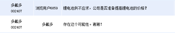 多氟多(002407)周五在全景網互動平臺表示,鋰電池在市場上供不應求,公司有可能提高其價格。
