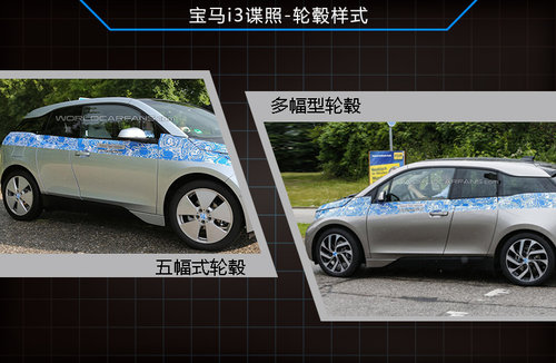 寶馬i3自從發布概念車以來,已經受到了各方的關注,每相隔一段時間就會有諜照圖片曝光,目前網絡中已經曝光了最新的i3申報圖片,從圖片中可以看出已經最后的定妝車型,在諜照曝光的同時,寶馬i3的未來所匹配的輪轂也隨之泄露,目前已經具備了兩種不同風格的輪轂樣式。
