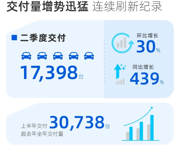 在交付量方面,小鵬汽車二季度交付車輛17398臺(tái),環(huán)比增長30%,同比增長439%。上半年累計(jì)交付30738臺(tái),已超去年全年交付量。2021年第二季度,P7的交付量為11522件,創(chuàng)下季度新高,比2021年第一季度的7974件增加了44.5%。