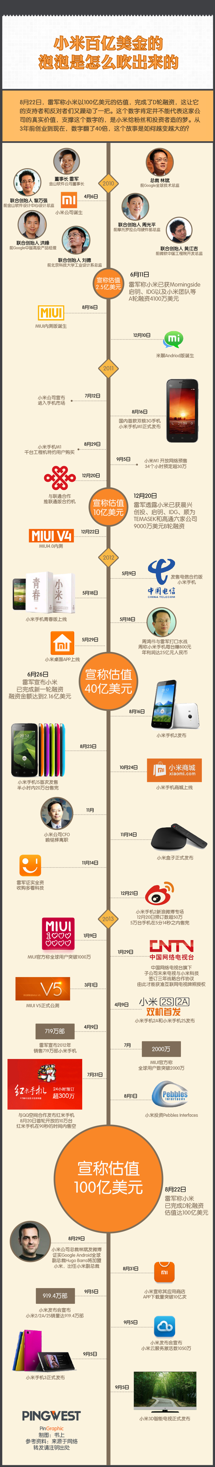 8月22日,雷軍稱小米以100億美元的估值,完成了D輪融資,這讓它的支持者和反對(duì)者們又躁動(dòng)了一把。這個(gè)數(shù)字肯定并不能代表這家公司的真實(shí)價(jià)值,支撐這個(gè)數(shù)字的,是小米給粉絲和投資者造的夢(mèng)。從3年前創(chuàng)業(yè)到現(xiàn)在,數(shù)字翻了40倍,這個(gè)故事是如何越變?cè)酱蟮模?