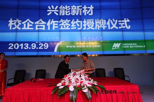 當天下午,四川興能新材料有限公司與西南石油大學、西南交通大學、電子科技大學、在興能新材料中控廳舉行校企合作框架協議簽約暨掛牌儀式。公司與西南石油大學聯合成立重點實驗基地,與西南交通大學超導與新能源研究中心聯合成立聯合實驗基地,與電子科技大學微電子與固體電子學院、新能源材料與器件研究開發中心聯合成立產學研合作基地。