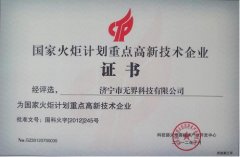 近日,山東濟(jì)寧無界科技有限公司收到國家科技部頒發(fā)的“國家火炬計(jì)劃重點(diǎn)高新技術(shù)企業(yè)”證書 ... 查閱全文