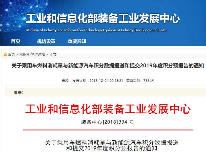工信部要求車企12月20日前提交2019年雙積分預報告