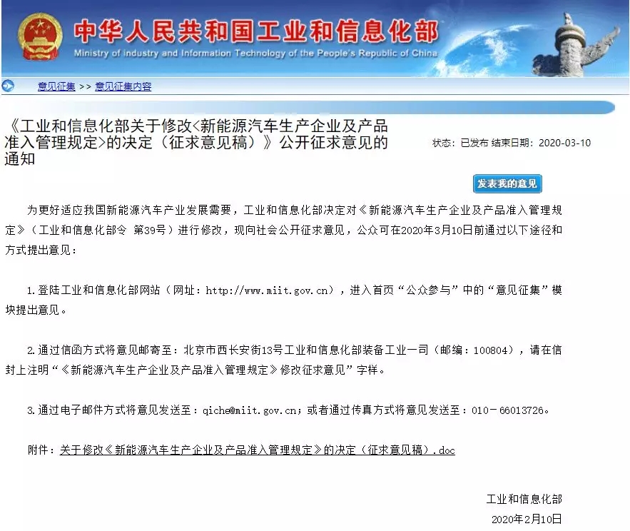 春節(jié)假期剛剛結束,工信部就推出對新能源汽車準入管理的修改意見,并公開征求意見。工信部明確,為更好適應我國新能源汽車產業(yè)發(fā)展需要,對《新能源汽車生產企業(yè)及產品準入管理規(guī)定》(工信部第39號)進行修改。準入管理更貼近產業(yè)發(fā)展需要,無疑是企業(yè)最急需的。而此次工信部對企業(yè)準入管理最大的變化就是將設計與生產分離,為代工掃清發(fā)展障礙。