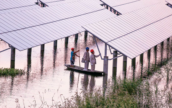 7月29日,位于江蘇泰州的全國最大水上光伏發電項目總發電量已經突破十億度 CFP / 供圖