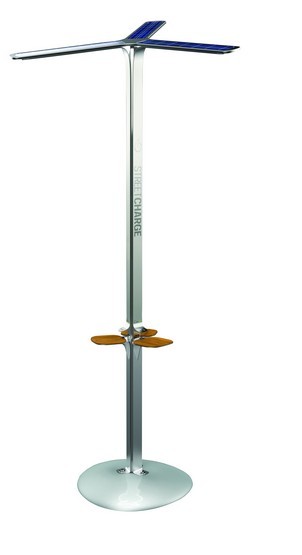 紐約市的居民以后有福了,太陽能廠商Goal Zero, 設計公司Pensa聯手運營商AT&T正在籌建街邊充電站,外形設計像一個高個的金屬桿。配置6個USB端口和3個小支撐架。金屬桿頂部是一個15瓦的太陽能電池板,另外電池板內部有一個168瓦時的鋰電池,確保充電站在晚上或者陰天的時候有足夠的電力給路過的群眾充電。