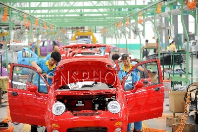 8月14日,山東維動新能源汽車有限公司生產(chǎn)車間,工人正在組裝低速電動車。 圖片/CNSPHOTO 中國新聞圖片網(wǎng)