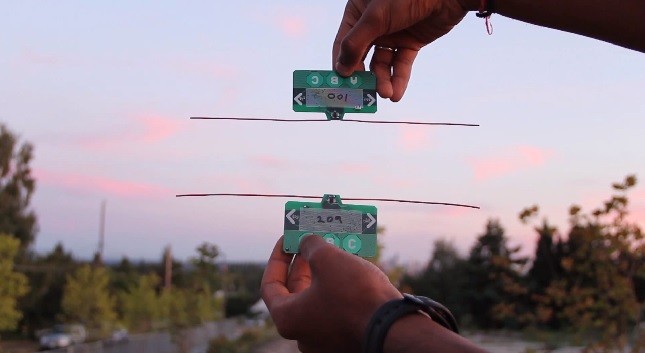 美國華盛頓大學研究員史密斯制造了兩部沒電池、但內置可檢測和反射電視信號天線的流動裝置,兩者通過互相反射訊號,制造摩斯密碼來溝通和交換資訊。