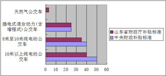 圖一. 中央和山東財政廳對新能源客車的補貼標準 單位:萬元圖一. 中央和山東財政廳對新能源客車的補貼標準 單位:萬元