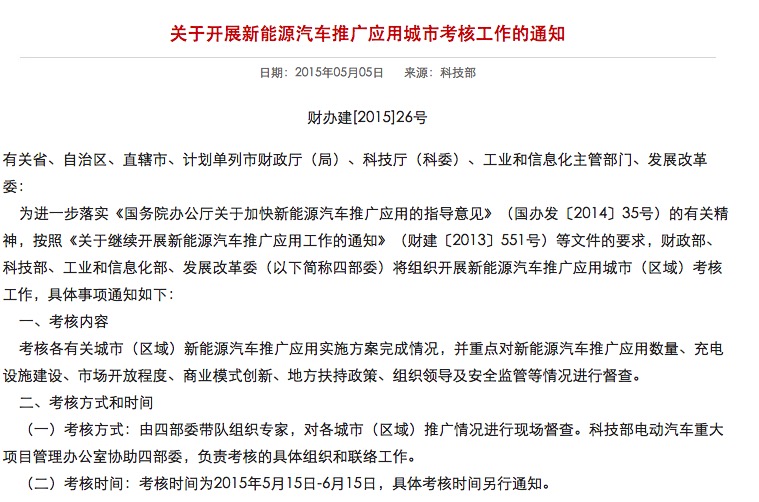 5月5日,科技部、財政部等四部委聯合發布《關于開展新能源汽車推廣應用城市考核工作的通知》, ... 查閱全文