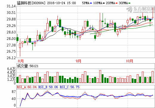 • 猛獅科技第三季度凈利虧損765萬元 同比下降近70倍 日期:2016-10-24 15:03:29 點擊:260 好評:0