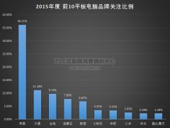 ZDC統計數據顯示,2015年度中國平板電腦市場上,蘋果以36.21%的關注比例高居榜首,領先優勢顯著。Android平板陣營中,三星領跑,獲得11.18%的關注比例,臺電可以說是國產平板的佼佼者,以9.74%的關注比例位居第三。其他上榜品牌關注比例均在8%以下。...