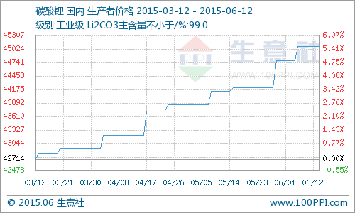 • 碳酸鋰本周維持4.5萬元/噸左右 同比上漲16.21% 日期:2015-06-12 22:21:38 點擊:708 好評:0